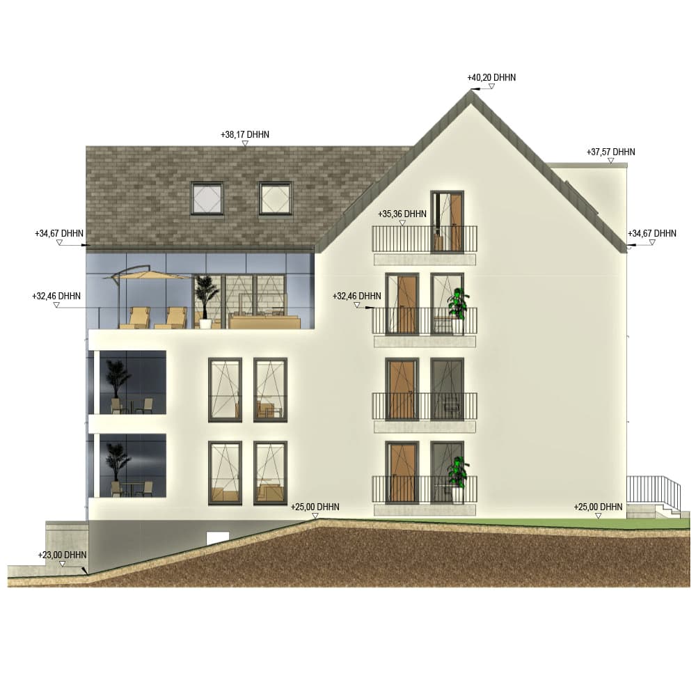 Höchster Standard: Das Gebäude wird nach modernsten Standards unter Verwendung nachhaltiger Materialien errichtet. Zur Ausstattung gehören unter anderem eine eigene Photovoltaikanlage, Fußbodenheizung sowie hochwertige Markenfabrikate (z. B. Villeroy & Boch).