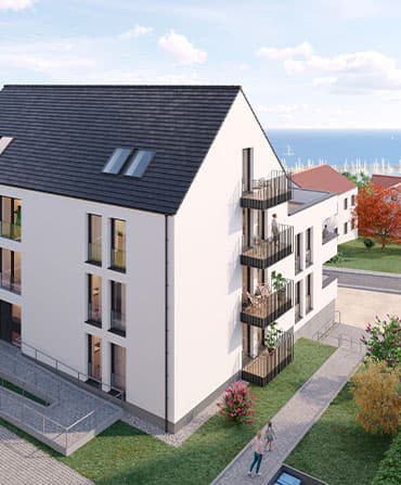 Panoramablick: Nahezu alle Wohneinheiten verfügen über einen seitlichen oder direkten Blick auf die Ostsee – genießen Sie das maritime Lebensgefühl jeden Tag aufs Neue.